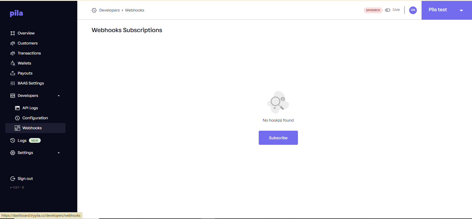 This endpoint allows you to Subscribe to Pilaβs webhook serviceRequest